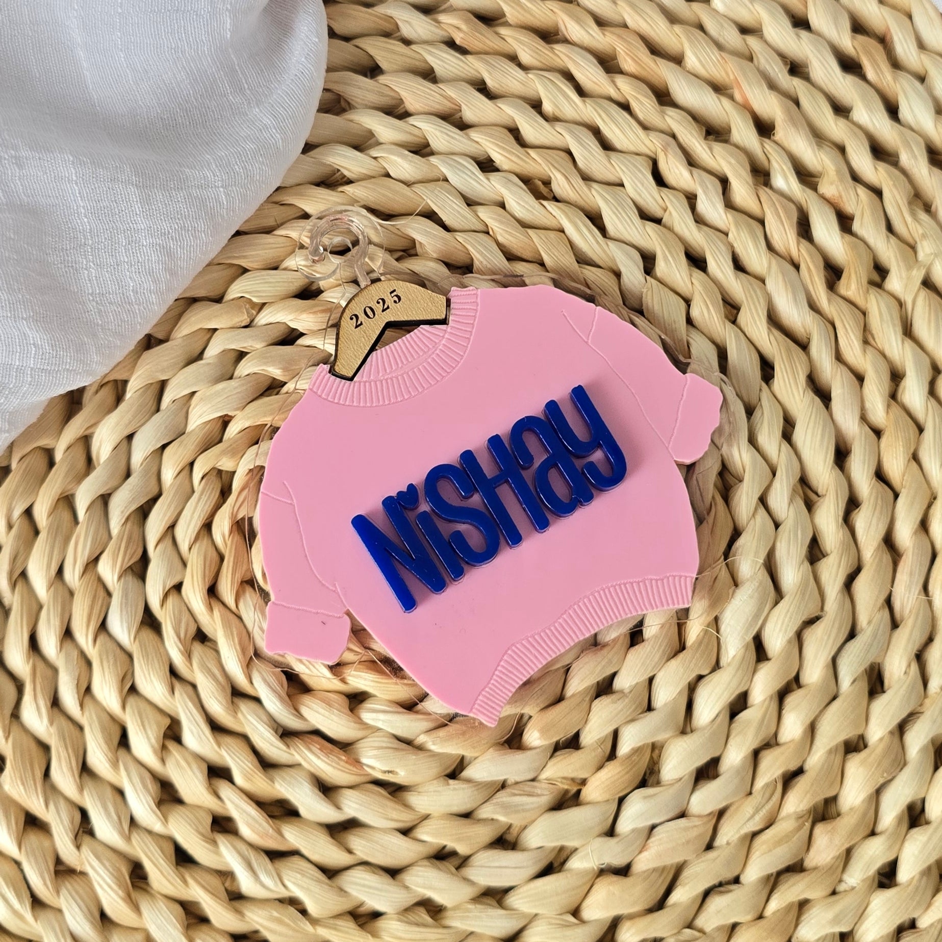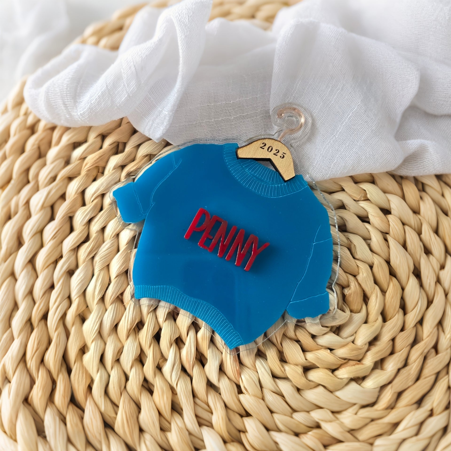 Give your tree a cozy touch with this Custom Sweater Ornament. Made with textured acrylic and 3D lettering, this personalized piece is perfect for gifting kids, teens, best friends, and anyone who loves cute Christmas décor.